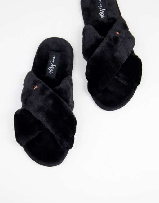 Product id: Black fluffy shop crossover slippers